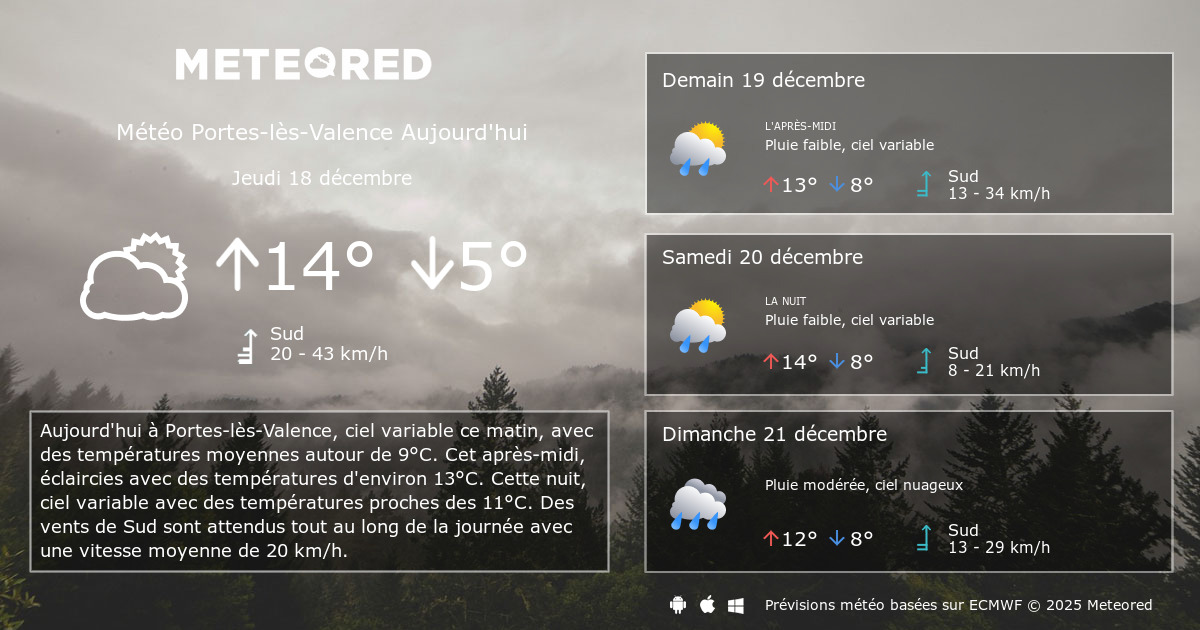 2syqlxotx5vuwm Source from : 18 hours ago Pluie, neige, orages, vent, températures… prévisions météo valence par heures. Données actualisées toute la journée. Trouvez les meilleures visites et activités à faire en 2021. Trouver un transport pour valence. 100 pour cent de chance d'avoir de la pluie et 7.6 milimétres dans la journée.