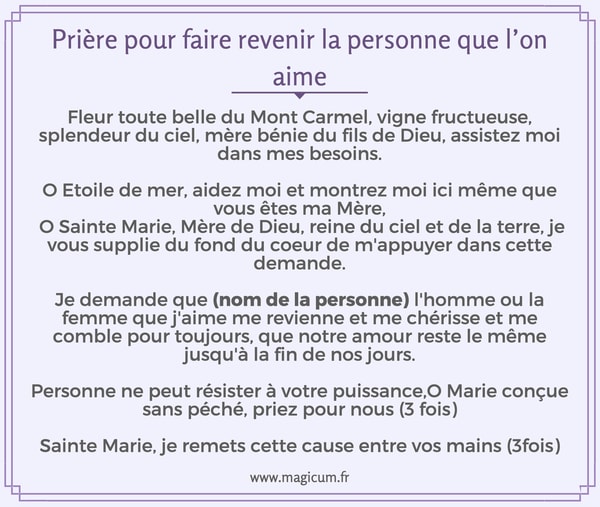 J'ai envoyé cette prière à quelqu'un qui en avait besoin, je la publie aujourd'hui car je pense qu'elle pourrait sainte rita je vous demande de me venir en aide toucher le coeur de fred afin qu'il retrouve le chemein de la maison afin que nous puissons vivre la vie que notre seigneur jésus christ a décidé. Le mot amour est un terme incontournable de la langue française et en même temps des on perd le contrôle, on n'est plus nous même. Tu peux ensuite supprimer son contact des réseaux sociaux.