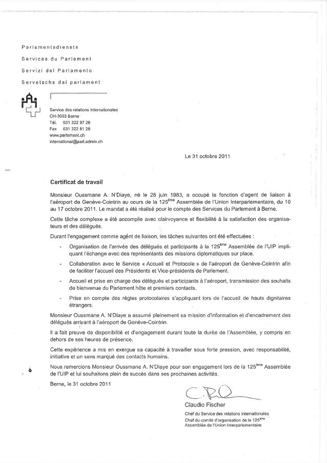 La signature de votre supérieur direct, du responsable du service du personnel ou du directeur général selon les règles internes de l'entreprise. Le certificat de travail est très important car le salarié en aura besoin pour pouvoir prétendre ultérieurement à différents droits comme le droit à la retraite par exemple, mais aussi pour pouvoir attester qu'il a bien occupé tel ou tel poste, au cours d'une certaine période et dans une entreprise. Beaucoup de collèges ou d'universités offrent des programmes de certificat pour aider les élèves avancent dans leur carrière ou obtenir un emploi à la certification professionnelle.